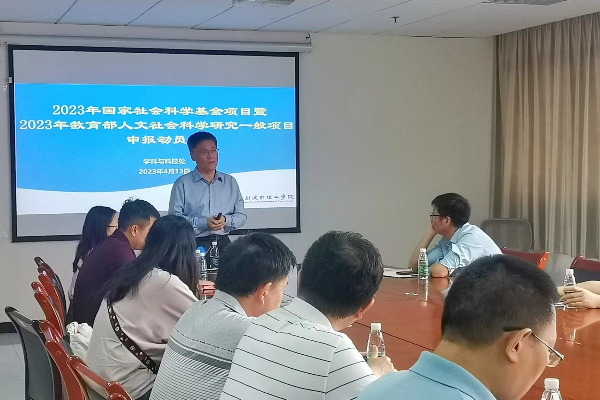 本网讯(记者罗兰)4月13日下午,伟德国际victor1946召开2023年国家社会科学基金项目暨2023年教育部人文社会科学研究一般项目申报动员会。拟申报2023年国家社会科学基金项目教师、拟申报2023年教育部人文社会科学研究一般项目教师、各单位科研秘书及学科与科技处全体人员共50余人参加会议。会议由学科与科技处胡海主持。